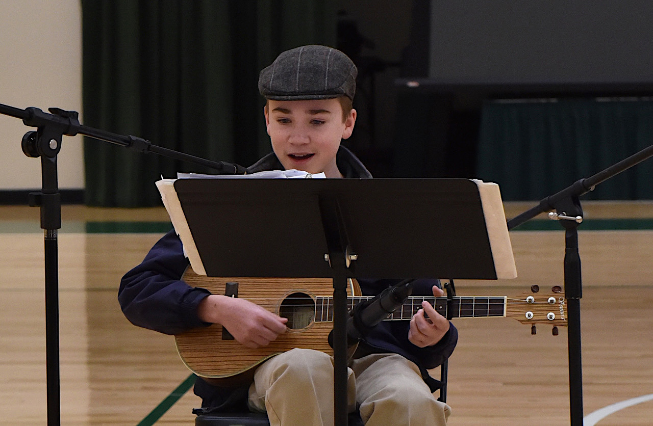 Sixth-grader Timothy Beck of Clayton received a rousing response as he sang a spirited rendition of “Country Roads”/”Rock Me” while playing the ukulele.