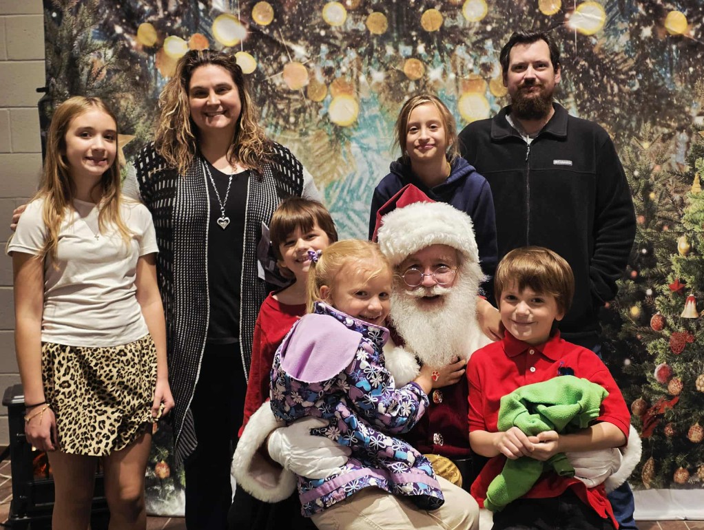 Old Saint Nick himself joined the helpers of the Habersham Central High School band. He agreed to assist the concert for his friend Jacob Weinstein, taking his place beside a decorated backdrop set in a corner of the performing arts center for photographs. A joyful family of eight gathered around the visiting celebrity for a group photo before taking their seats in the auditorium to support their daughter, Madyson Tilley, who played the French horn.