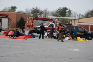 In addition to the active shooter incident, Cleveland Fire personnel were challenged with a simulated fire that was set in one of the student’s lockers. So, all participants had to deal with heavy smoke in the building during the drill.