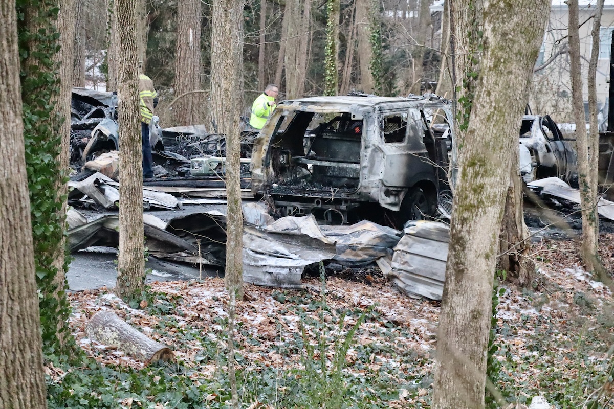MT. AIRY, Ga. — A fire that started in a carport early Wednesday destroyed four vehicles and damaged a Mt. Airy home where a Baldwin police officer, his wife, and their young daughter live.