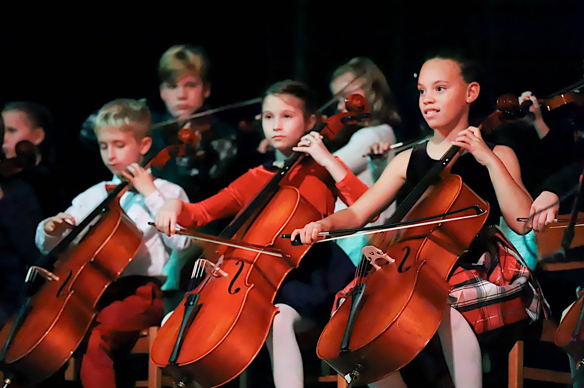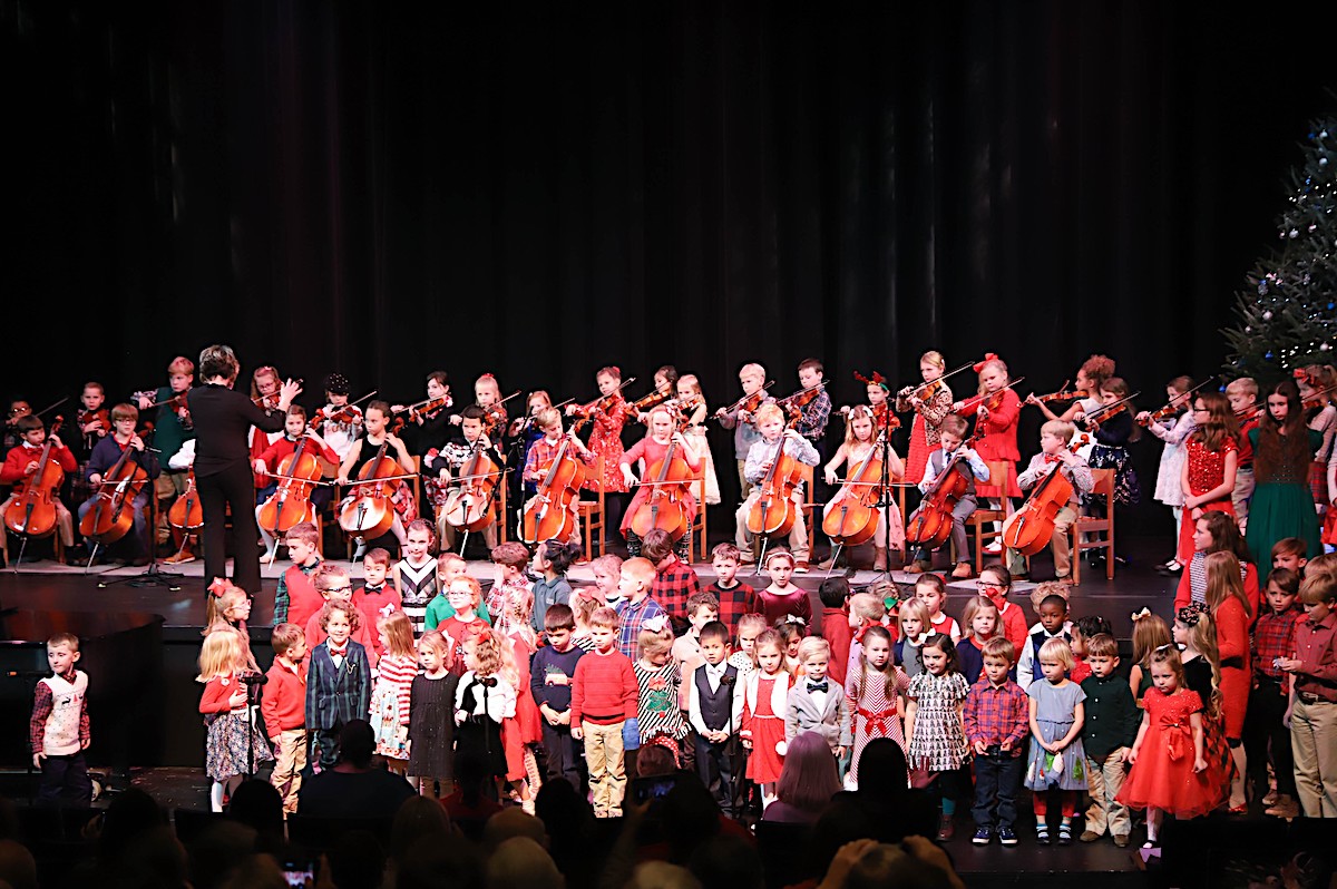 Lower School students sing and play strings in the Christmas Showcase at Rabun Gap-Nacoochee School. (RGNS)