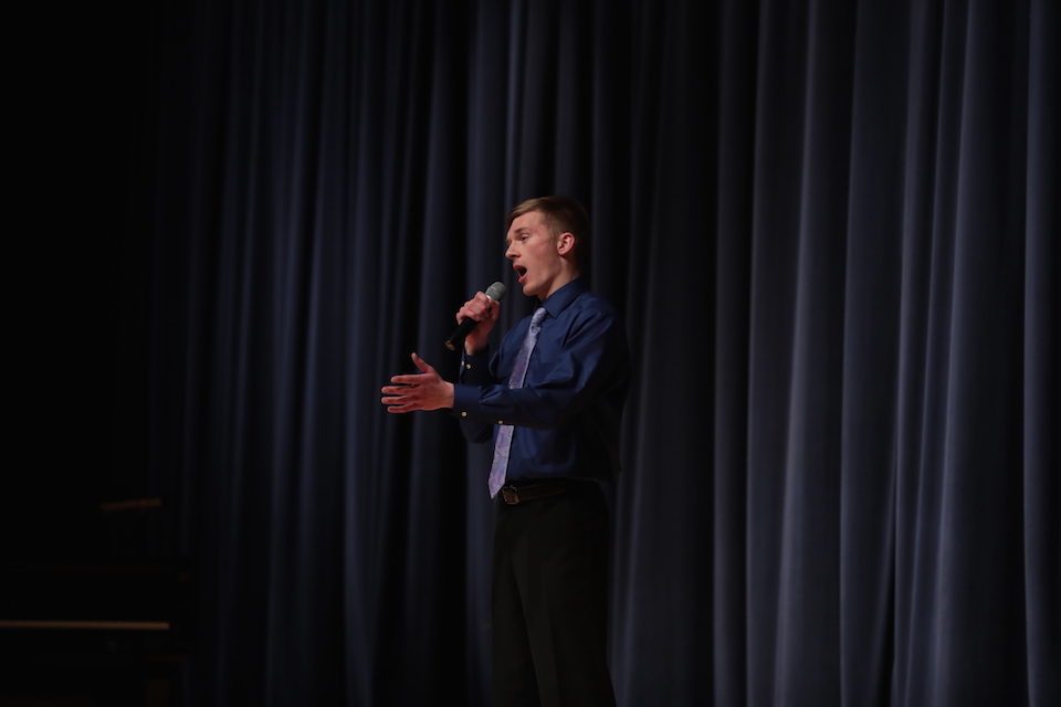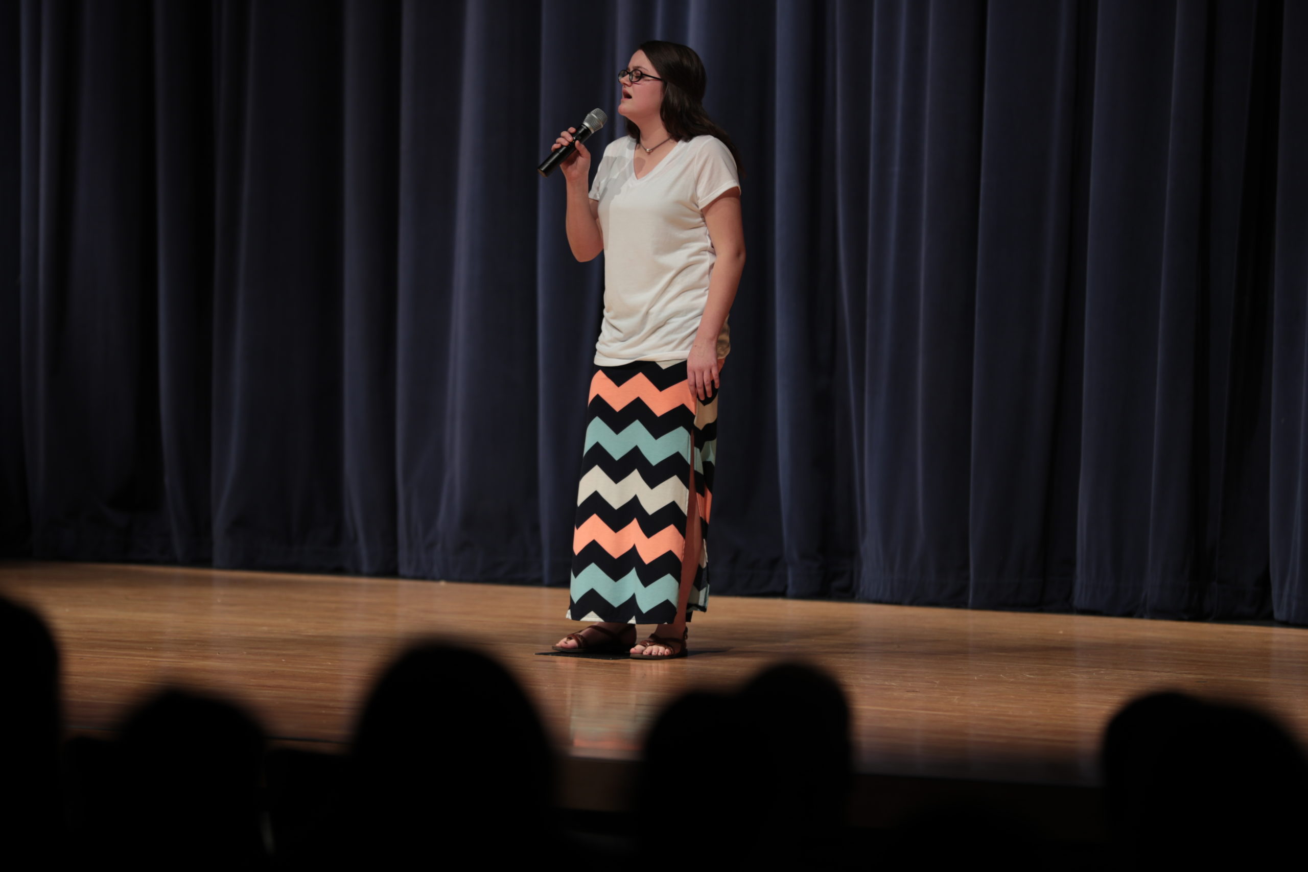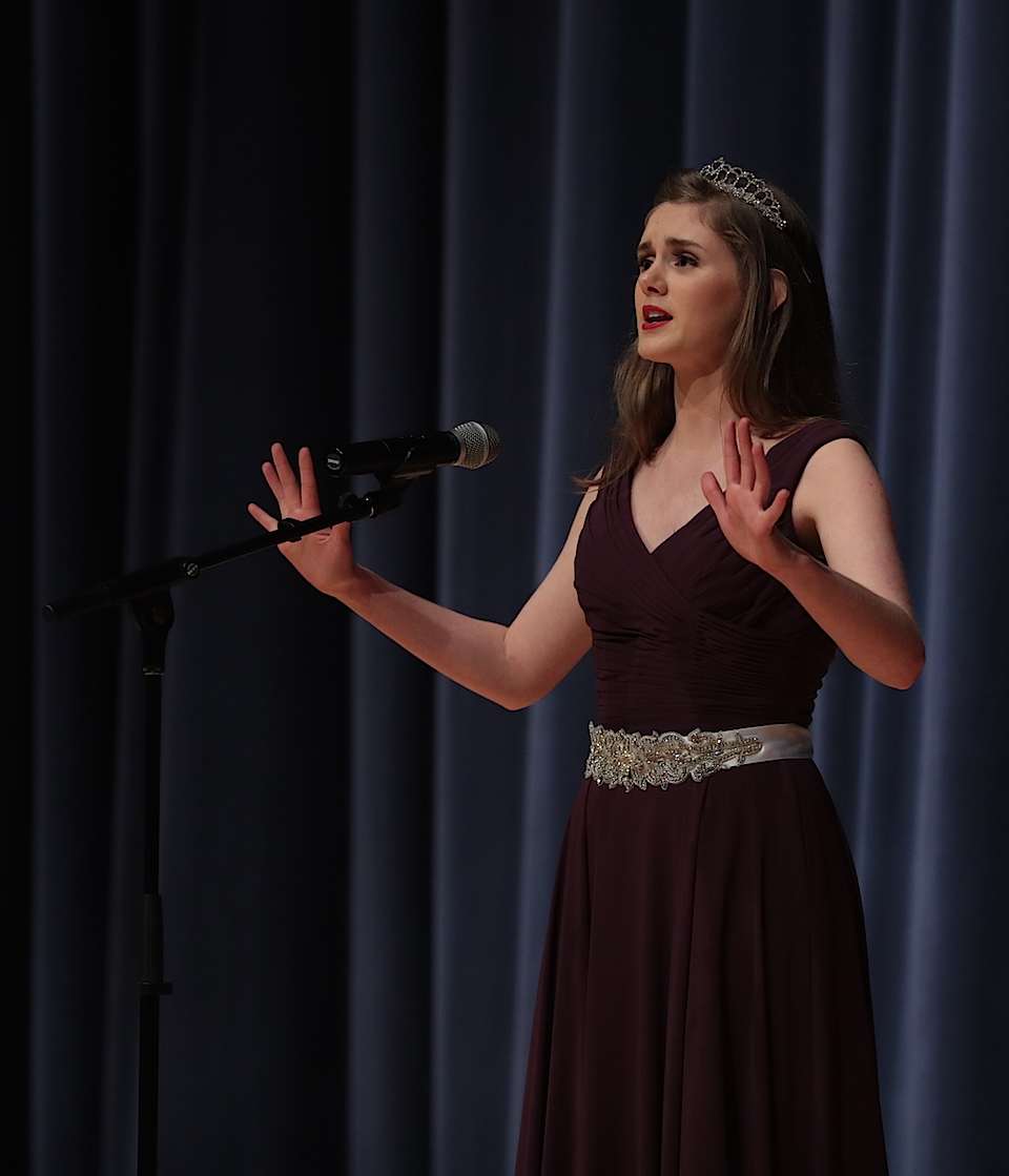 Cornelia Kiwanis President David Wonders (far right) joins the winners on stage at the 37th Annual Cornelia Kiwanis Talent Showcase. The event was held Feb. 23, 2018 in the Habersham Central High School Auditorium in Mt. Airy. (photo/Daniel Purcell)Emerald Patterson won first place in the high school division during the 37th Annual Cornelia Kiwanis Club Talen Showcase. (photo/Daniel Purcell)