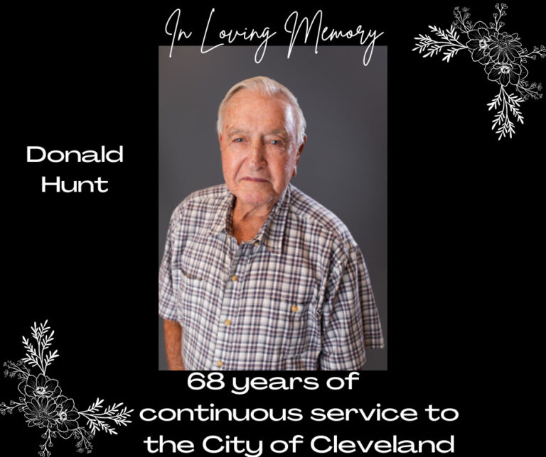 “The City of Cleveland extends our deepest condolences to the family of Donald Hunt. Mr. Hunt faithfully served as the Director of Public Works and was employed by the City of Cleveland for 68 continuous years. Donald was our friend and colleague and the void his death leaves cannot be filled. Please join the City Council and I, along with all of our employees, in praying for his sons, Rick and Paul, and all of the Hunt family.”