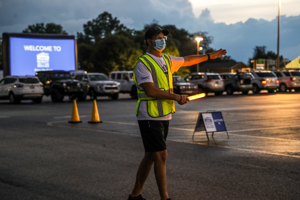 Every detail was well attended to as Lowe’s provided moviegoers with free snacks and water in buckets that also included masks and hand sanitizer, even a trash bag. Store employees served as ushers and parking lot attendants and saw to it that everything was run in an orderly fashion. Saturday night, they even made rounds during the movie offering free glow sticks to children. The employees, all of whom wore masks, were polite and friendly.