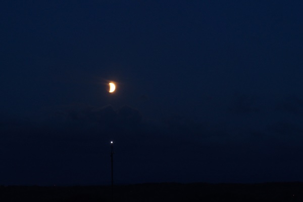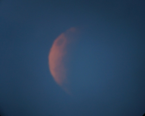 It was a battle against the clouds and terrible atmospheric conditions this morning in Dahlonega, but I was able to get some pics of the lunar eclipse. This made the first visible eclipse across any part of the region since 2010. The next eclipse will occur in September and we can always hope for better conditions. The pics below were captured through a 6″‘ Dobsonian telescope. Notice the “shimmer” across the disk, this was caused by strong winds in the mid/upper atmosphere which makes focusing difficult, but also results in the moon seeming to “twinkle” especially around the edges.