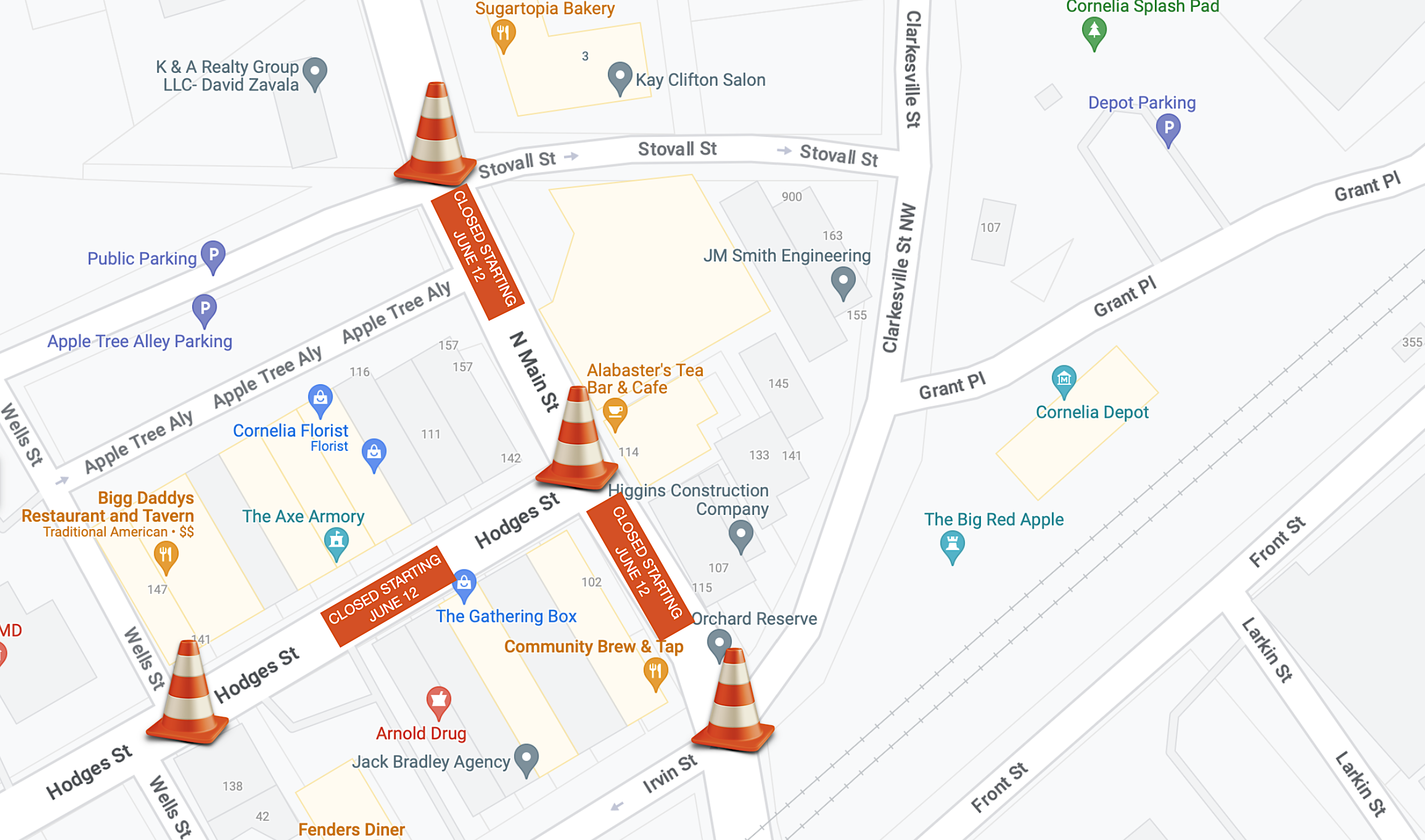 Crews will close off a section of Main Street in downtown Cornelia starting next week to repair a sinkhole.