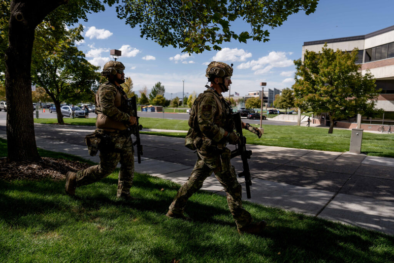 Law enforcement responds after conservative political commentator Charlie Kirk was shot and killed during an event at Utah Valley University in Orem on Wednesday, Sept. 10, 2025. (Photo by Spenser Heaps/Utah News Dispatch)
