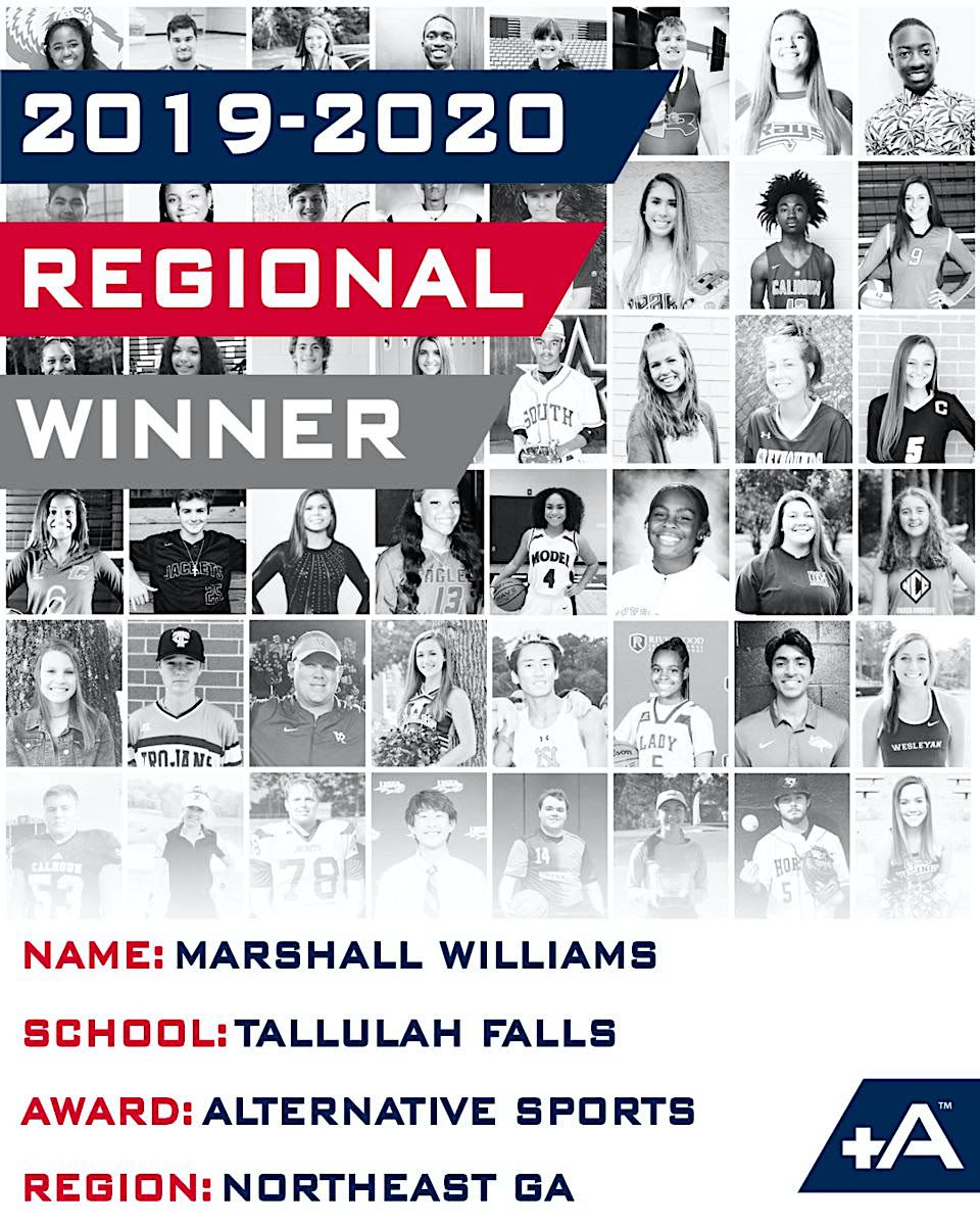 Tallulah Falls School senior Marshall Williams of Toccoa on Friday was named Positive Athlete by The Positive Athlete for the Northeast Georgia Region. Williams, a founding member of the TFS bass fishing team, was the honoree for the “Alternate Sports” category.