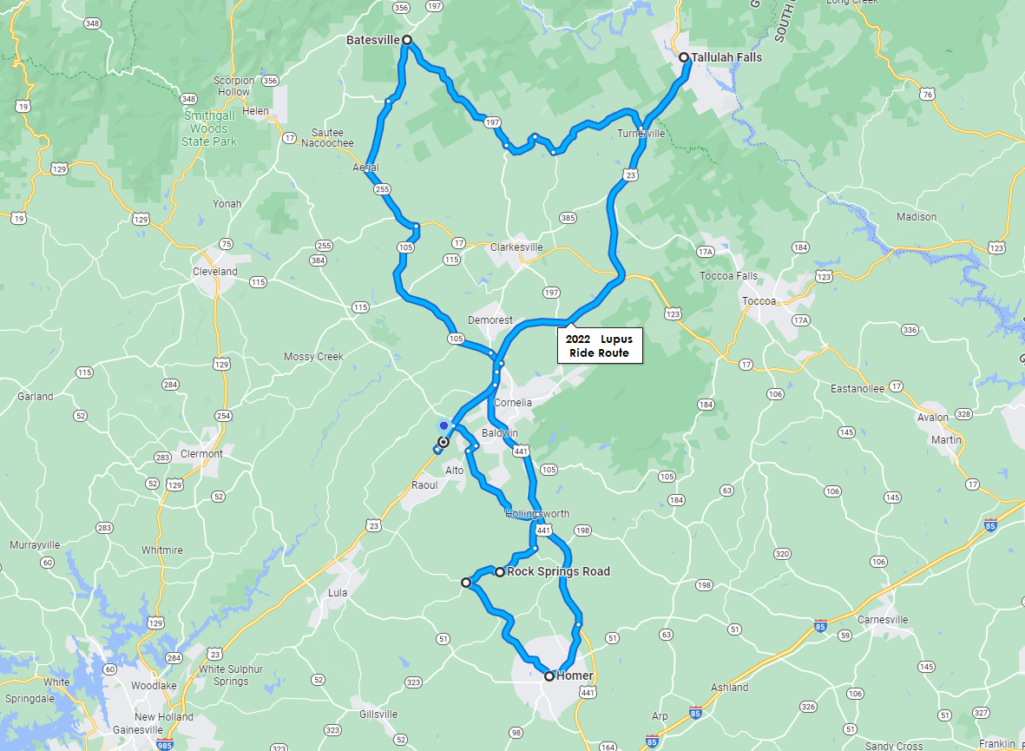 Any monetary donations can be made to Amos Smith for the Lupus Awareness Ride, or to the Town of Alto for the Lupus Ride. Sponsorships can be mailed to the Town of Alto at PO Box 215, Alto, GA 30510.