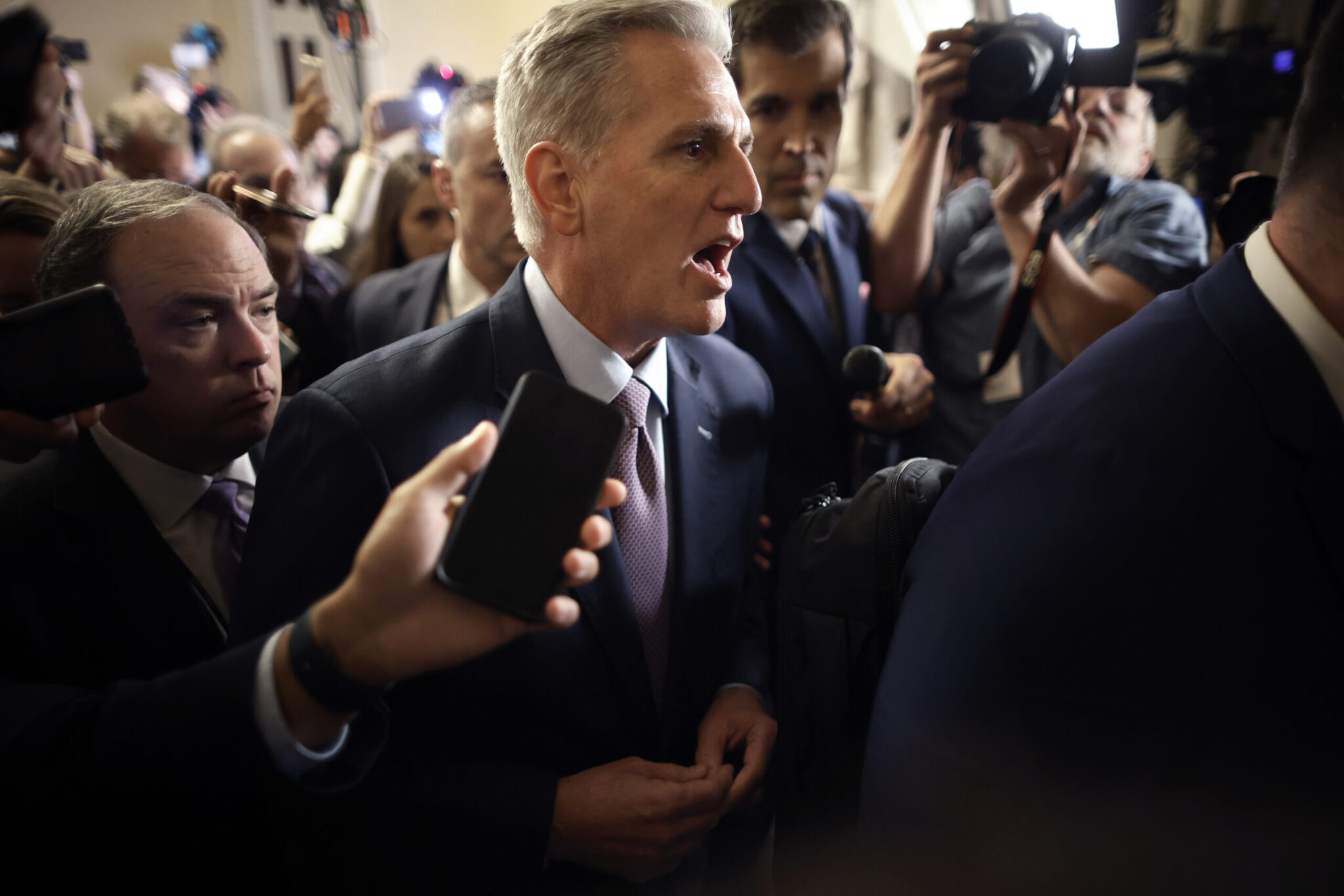 A few minutes before a McCarthy press conference began, House Republican leaders announced they were canceling votes for the rest of the week and that the chamber will meet in session again at a time to be announced. The House was supposed to debate two spending bills later this week, one for programs at the Energy Department and one that would fund the Legislative Branch, including Congress.