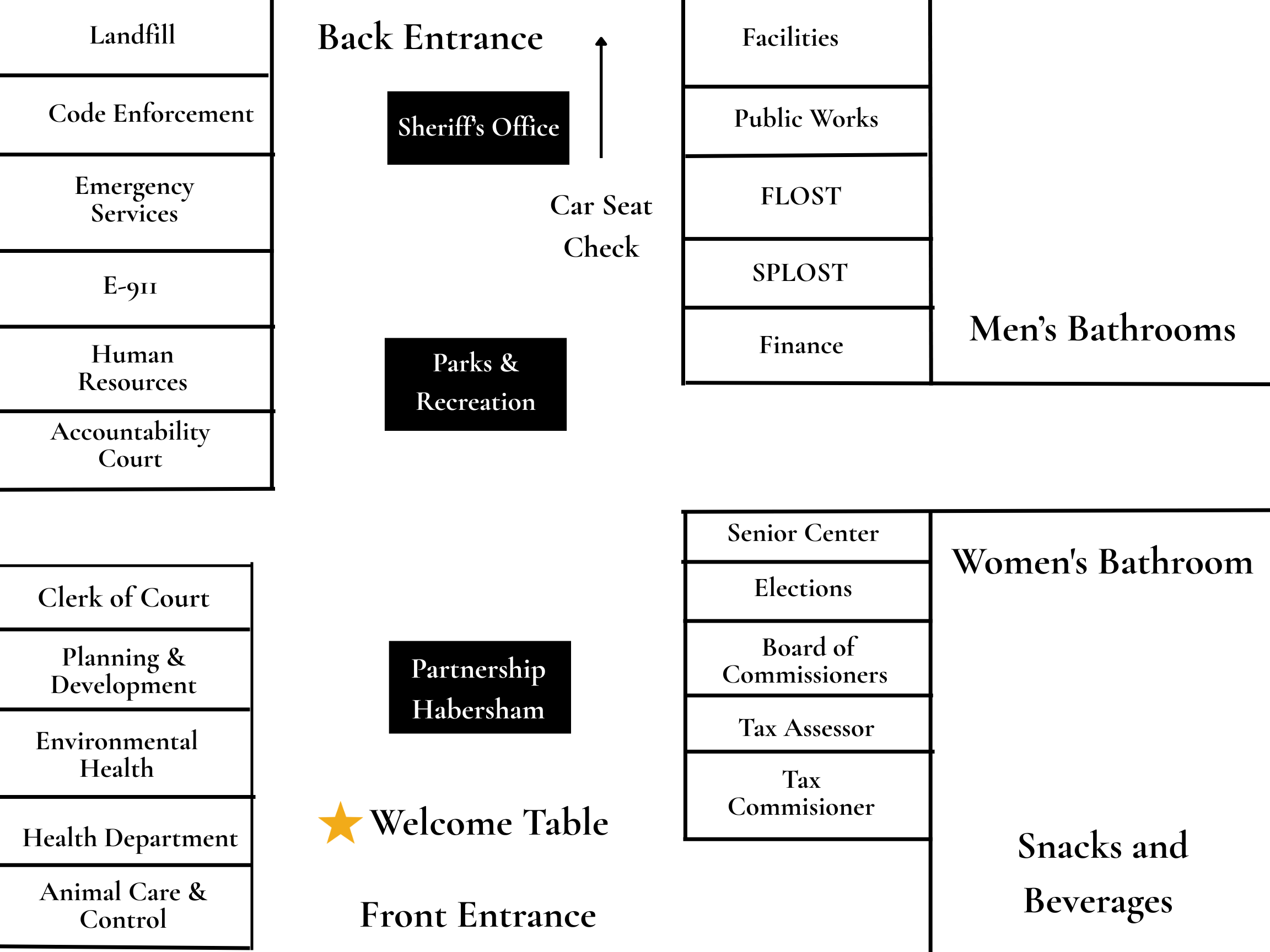 Organizers say multiple city and county departments will be represented, giving citizens a chance to engage one-on-one with staff, gather information, and better understand how local government operates. The layout below shows the participating departments and where their information booths will be located inside the Aquatic Center.