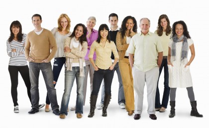 623-05849460 © Masterfile Royalty-Free Model Release: Yes Property Release: No Studio portrait of large group of people standing arm in arm