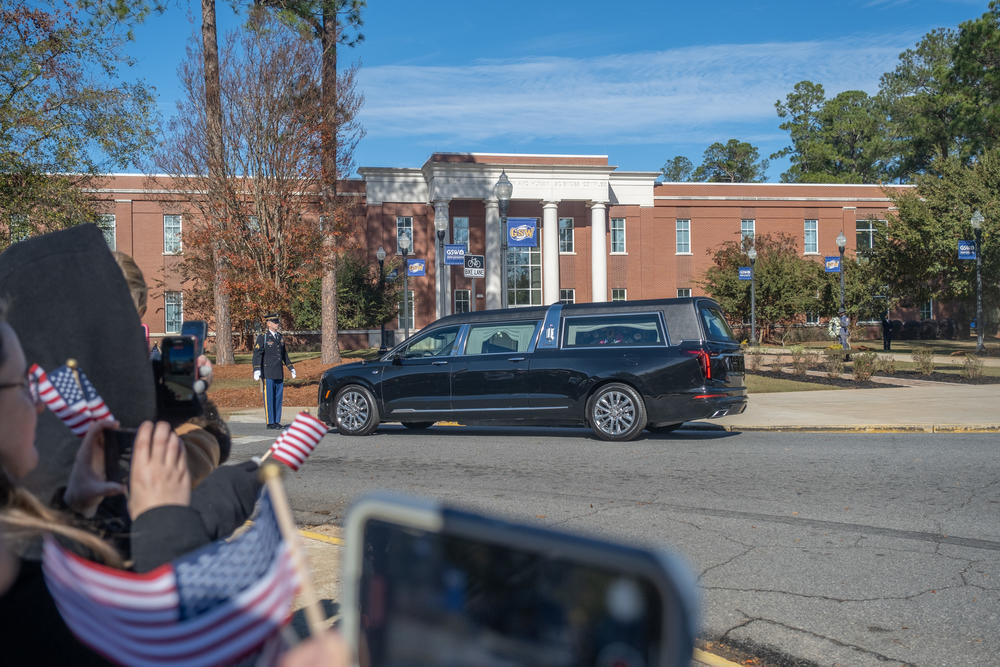 The official tributes started on Monday when the Carter family and others, in a motorcade carrying Mrs. Carter’s casket, made their way from Phoebe Sumter Medical Center and through Georgia Southwestern State University in Americus for a wreath-laying ceremony.