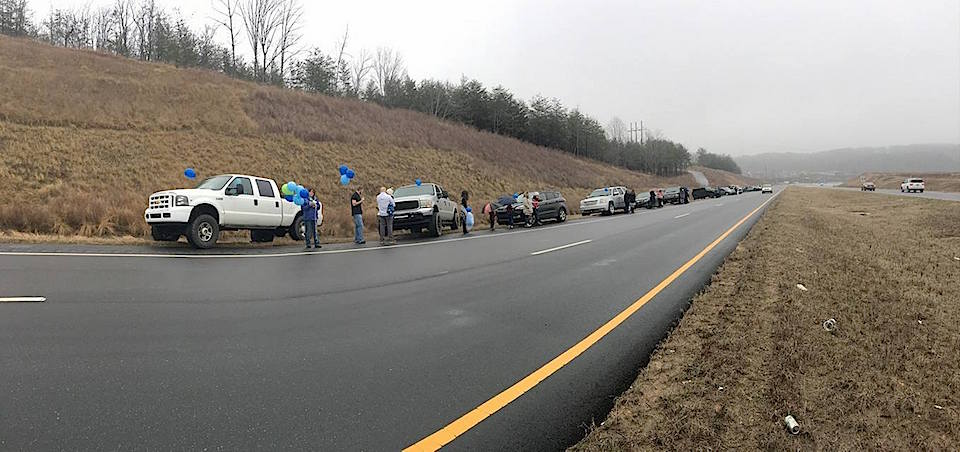 Dozens of people responded to an event page on Facebook that encouraged the Cleveland community to line the funeral procession route. They stood in support, some with candles and balloons in their hands, as the family passed by. Blue balloons were released into the air along the Appalachian Parkway in memory of Easton.