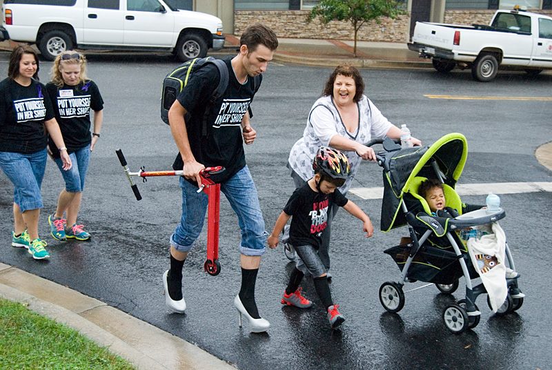 That’s the message dozens of men, women and children sent to the local community Saturday as they donned high heels and sandals for the 3rd Annual “Walk a Mile in Her Shoes” domestic violence awareness event. Part of an international men’s march to stop rape, sexual assault and gender violence, Saturday’s local event was sponsored by Circle of Hope, a Habersham-based shelter and resource agency that assists victims of domestic violence in Habersham, Stephens and White Counties.