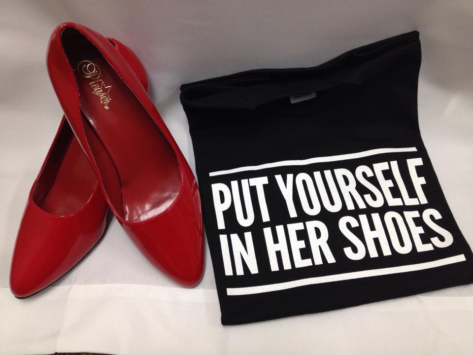 Here’s the potentially harmful mix. Take a six-foot tall, 200-pound man and his size-13 feet and squeeze them into a pair of women’s pumps. Then, watch and try not to laugh as he walks a mile through the streets of your hometown.
