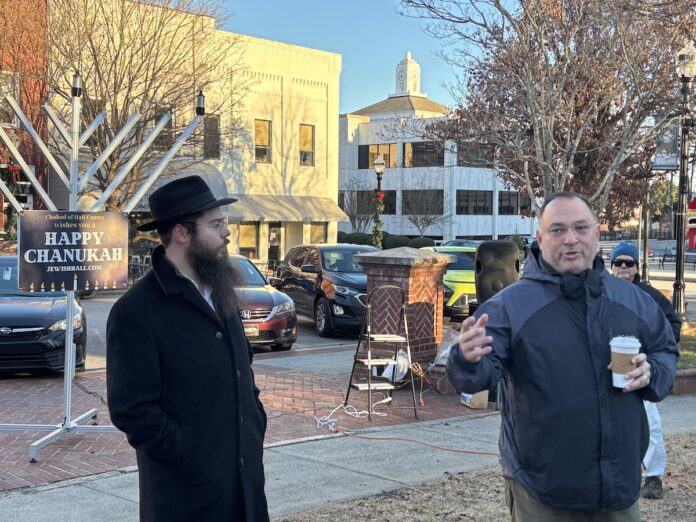 Chabad of Hall County invited the broader community to attend the ceremony as a show of solidarity and support, emphasizing that the event was meant to celebrate the holiday while affirming shared values of safety, freedom and respect.