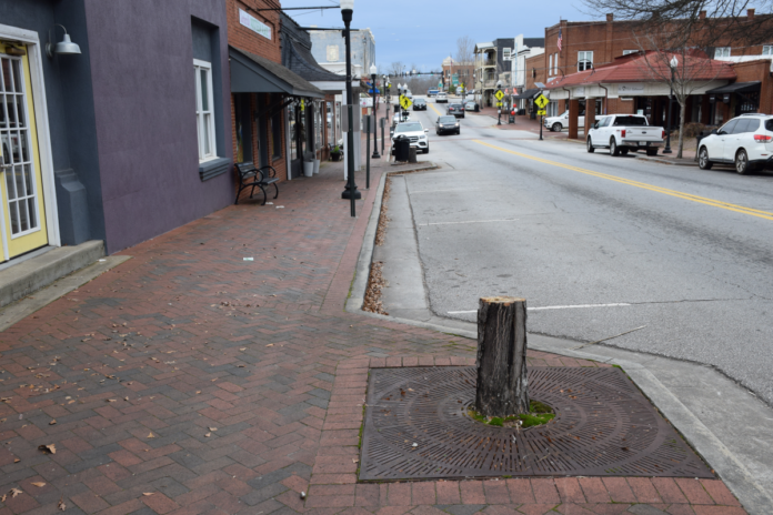 If you have been to downtown Clarkesville in the past month, you may have noticed a few trees missing along Washington Street, just a few blocks east of the square. What is left of the trees are high-standing stumps and some sawdust.