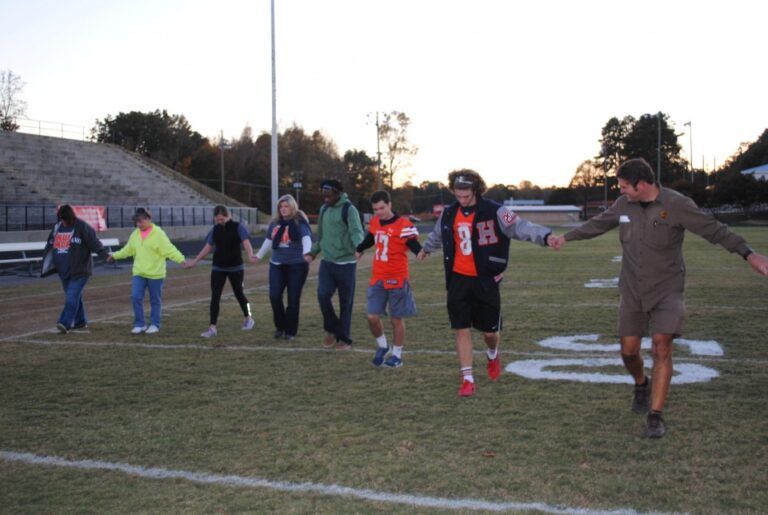 Habersham’s varsity football team members range in age from 14-18. They may look big on the field but they’re still just boys who are becoming men. “They had no choice in building a large school, no choice in being in 6A, no choice about the schedule they play,” Black says in the team’s defense. “Our Raiders just wanted to play football and they deserve our support.” Kinsey adds, “We want the community to know what integrity our football players have. The scoreboard doesn’t reflect what character and tenacity these young men possess. The true victory is when varsity football players voluntarily line up hand in hand with MOB MOMs and walk the football field, end zone to end zone, praying. The humility that comes from a losing season can be the fertile soil God needs for a perfect harvest. We have already had prayers answered.”