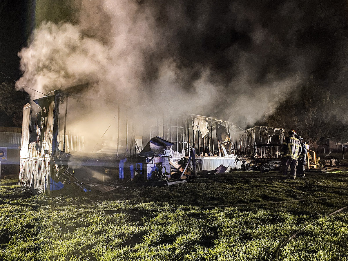 State fire investigators say the fire that destroyed this mobile home was started by fireworks. (State Fire Marshal’s Office)