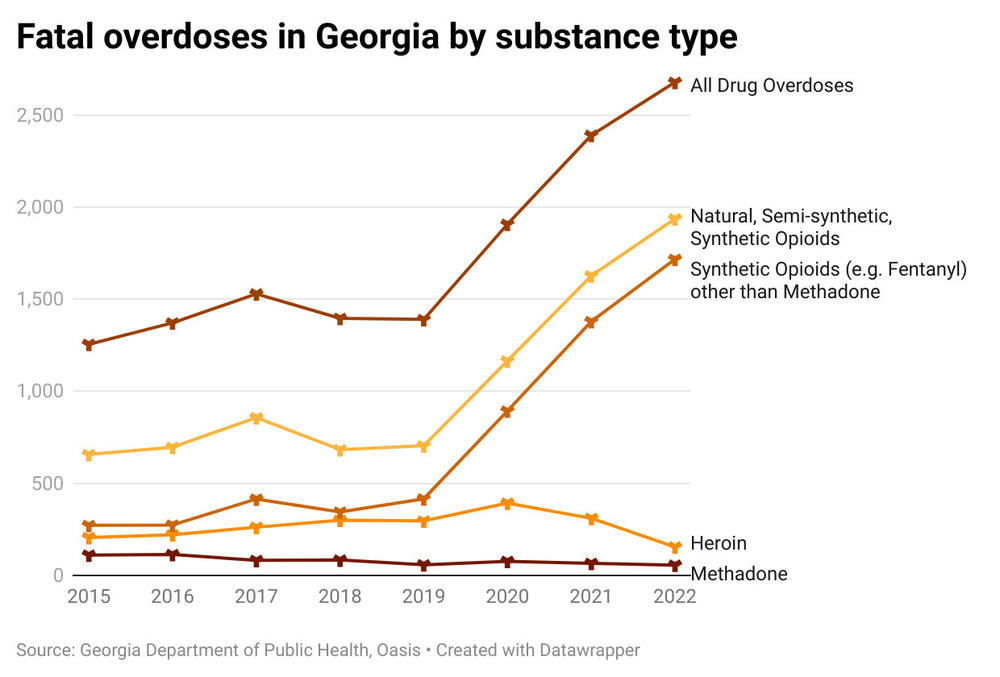 She’s not alone. In 2021, 46 million people in the U.S. were diagnosed with a substance use disorder, or SUD. Last year, 2,600 people in Georgia died from drug overdoses, almost double from 2019, before the COVID-19 pandemic.