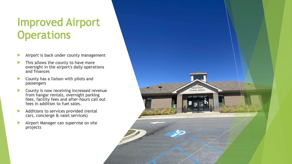Harkness and Vaughn addressed current capital projects. The airport has a waiting list with 49 people waiting to rent hangar space. With demand at this level, the county commission has moved forward with Phase 1 of the hangar expansion project that will take its current capacity from 68 fixed base aircraft to 91. Once the airport has over 100 fixed base aircraft, it will become an airport of regional significance. This designation will double the amount of federal grant funding the airport will receive.