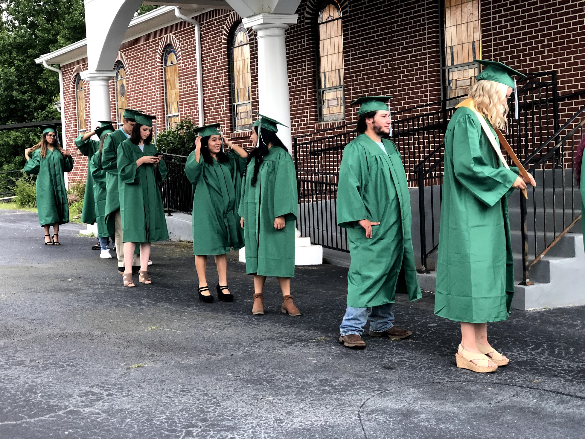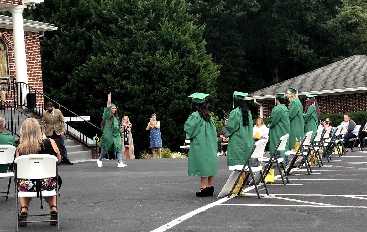 Habersham County Sheriff’s deputies escorted the students from the high school in the Fairview community to Antioch Baptist Church in Mt. Airy where they took part in the evening outdoor ceremony.