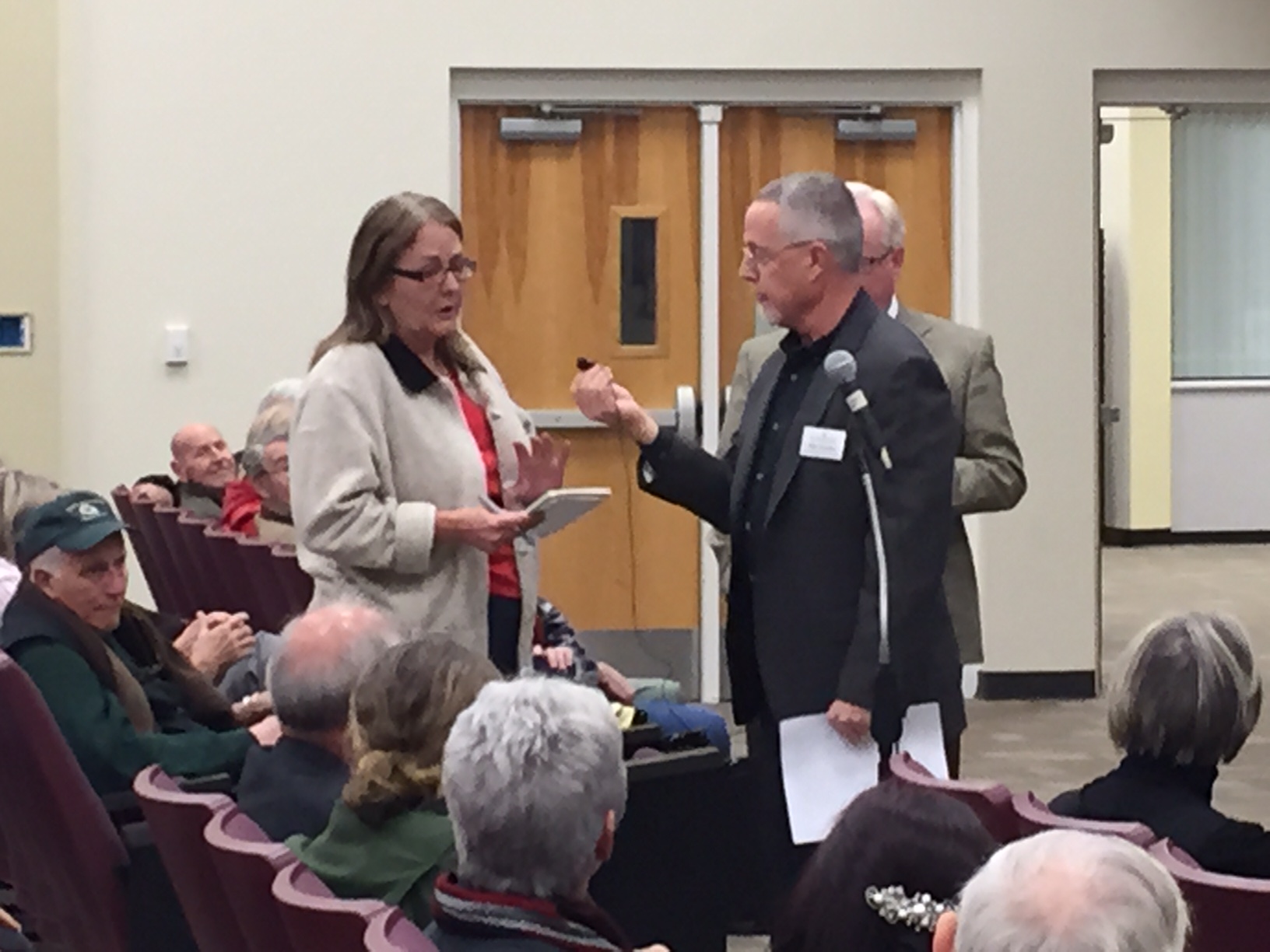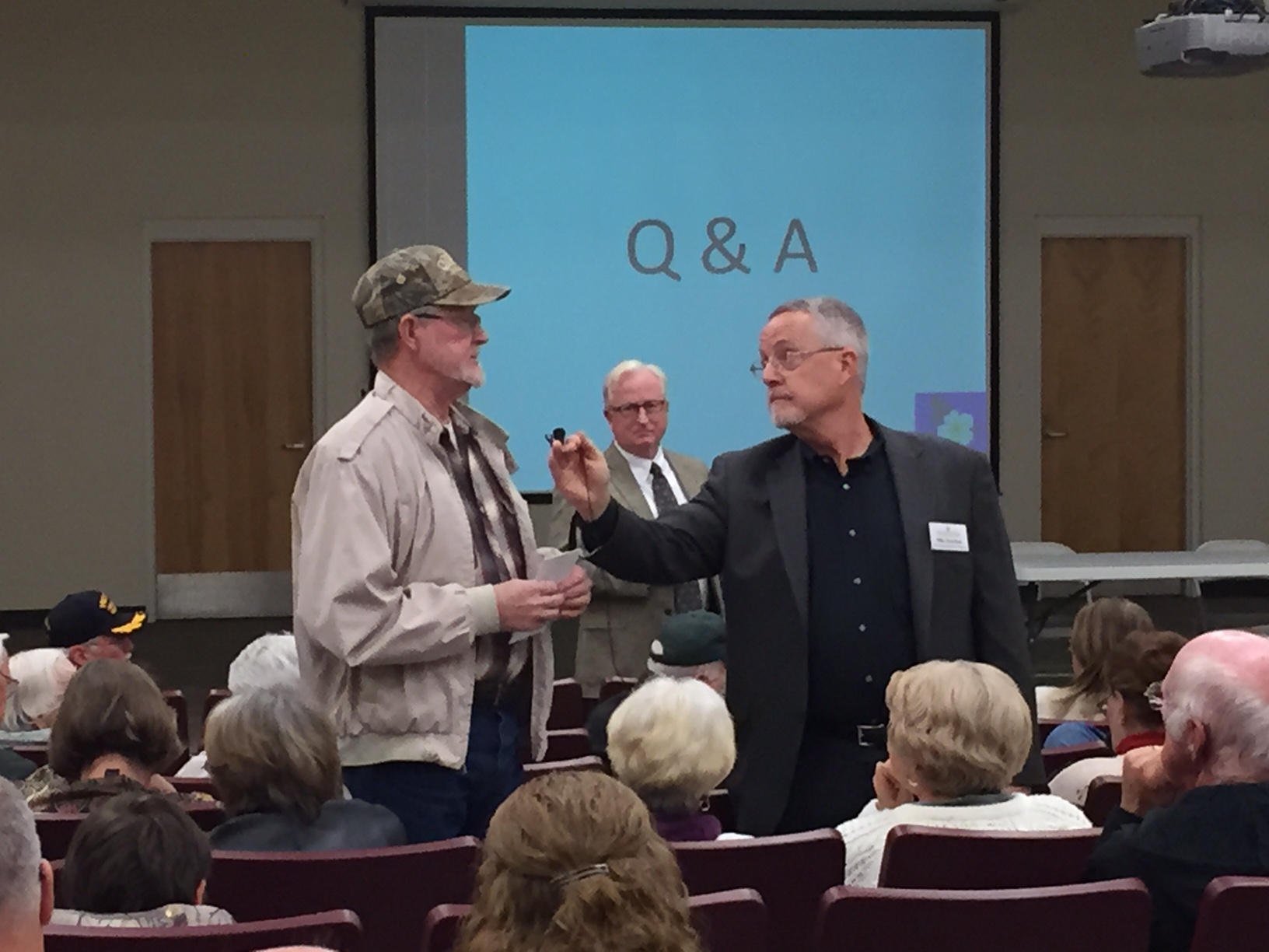 The question and answer portion of the hearing got off to a shaky start when moderators – Habersham County manager Phil Sutton and Mike Hourihan from the Carl Vinson Institute of Government at U.G.A. – announced the meeting would be kept to an hour and questions and comments would be limited to two minutes. Many in the audience were upset by the time limits.