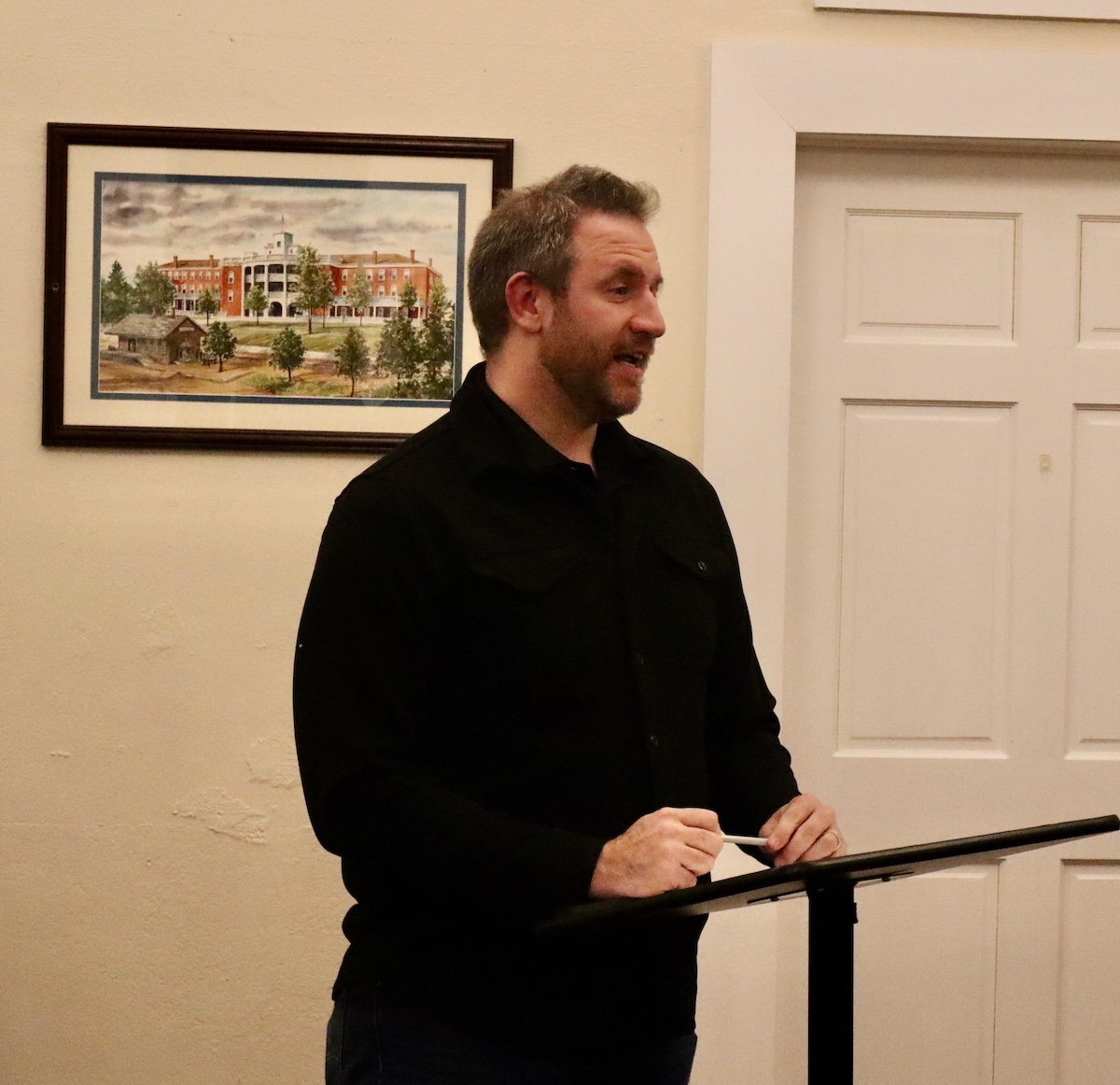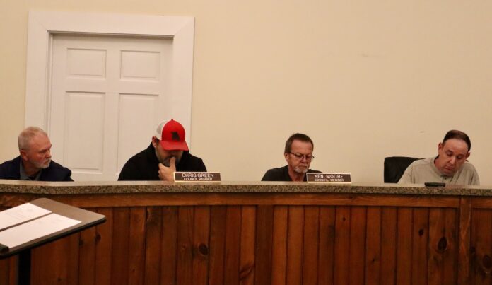 Mt. Airy Mayor Adam Tullis leads the debate for the license fee for a farm winery. (Patrick Fargason/Now Habersham)