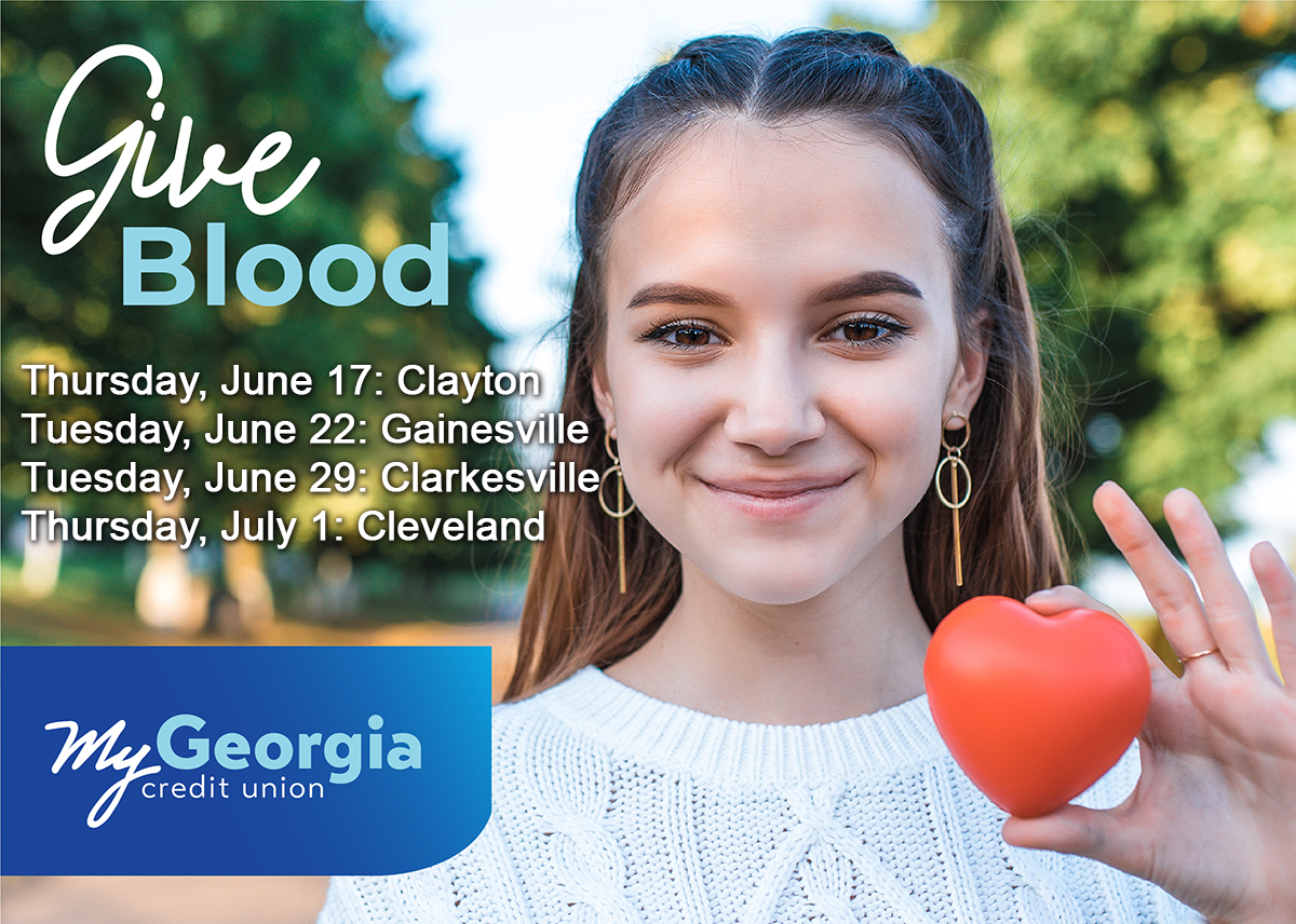 Blood donations have been in decline since the pandemic hit, and it’s taking a toll on Georgia’s blood supply. To help, MyGeorgia Credit Union will host several upcoming area blood drives at its branches in Gainesville, Clayton, Clarkesville, and Cleveland.