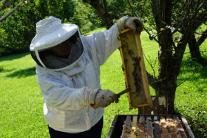 “Honey bees are truly the angels of agriculture,” Webb says. “They sound the alarm when there was something wrong, they are in tune to what’s going on with our earth. […] You should be kind to the honey bees.”