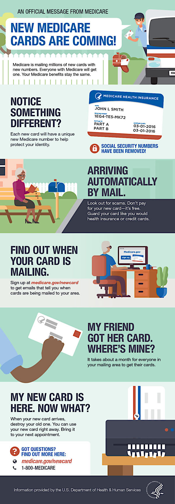 As soon as people receive their new Medicare card, they should destroy the old card and keep the new number confidential.