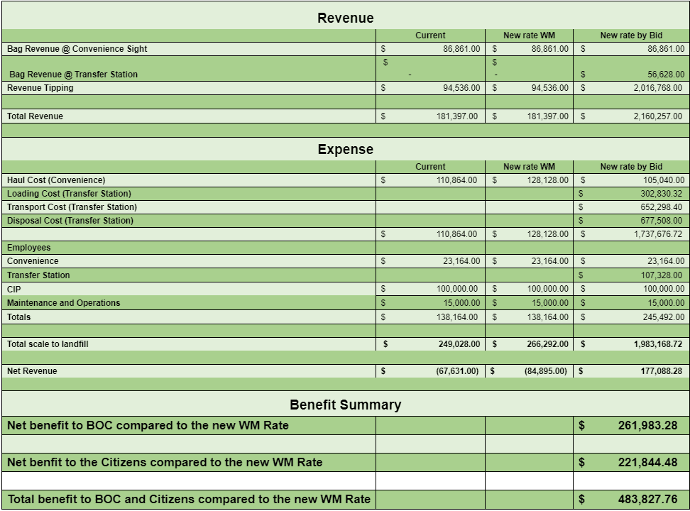 Combining that with a proposed rate increase from Waste Management got the commissioners looking for a better solution. The county decided to put each element of the operation out for bids.