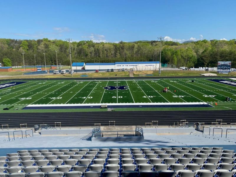 White County Assistant School Superintendent Scott Justus told the board of education Tuesday morning that work on installing artificial turf is running ahead of schedule. Justus said, “Thanks to Charles Black Construction and the people working for them” we are running about a week ahead of schedule.