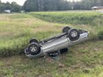Traffic was temporarily stalled Friday evening when a pickup truck overturned on GA 105/Cannon Bridge Road outside of Demorest.
