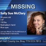 The Hall County Sheriff's Office needs your help finding a missing woman. Sally Sue McClary, 38, was last seen on March 11 in the...