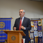 Secretary of State Brad Raffensperger briefly spoke to approximately 30 business leaders and elected officials during a lunchtime visit with the White County Rotary...