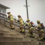Northeast Georgia firefighters climbed the stadium steps at Stephens County High School Sunday morning. Loaded down with 65 pounds of gear, they trudged up...