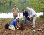 Volunteers plant hemlock trees at Yonah Preserve