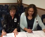 Holly Roberts, left, Finance Officer, and Staci Newsome, right, Chief Financial Officer for Habersham County Schools, discuss the millage rate determination process after a...