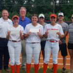 Raider varsity softball players who have earned an Academic Letter were presented academic helmet decals by the Academic Booster Club during a pre-game ceremony...