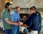 Officials present Lifesaving Award certificates and medals to Dakota Tyler and his father Terry. (photo/Cindy Tyler)