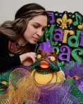 City of Clarkesville employee Cameron Gerrin puts the finishing touches on the city of Clarkesville's Mardi Gras themed duck. (VFL)