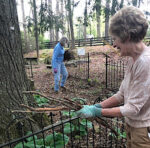 Shown, from left, are Dottie Wonders and Cissy Nichols with the Clarkesville Garden Club at an April 13 work day at the Old Clarkesville...