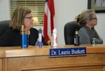Vaping paraphernalia on display as Superintendent Dr. Laurie Burkett and Board Chair Missy Jarrard listen as administrators detail the vaping situation in the schools....