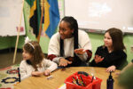 International students from the Upper School enjoyed the opportunity to share about their countries with the younger students. Pictured, left to right: Lily Mcaleer ‘32...