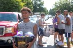 The TMU Bears soccer team volunteers to help carry luggage into the dorms for incoming freshmen on Move In Day at Truett McConnell University....