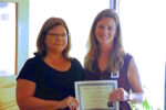 Dr. Laurie Burkett presenting ” Service Above Self” certificate to Mossy Creek Elementary Principal Jennifer King. (photo/wrwh.com)