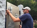 Toccoa Falls College employees install a new sign commemorating the flood of Nov. 6, 1977, and its aftermath.