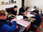 Members of the Royal Ambassadors (RAs) at Clarkesville Baptist Church make bandanas for the firefighters battling wildfires in Rabun County. (photo/Mandy Wade)